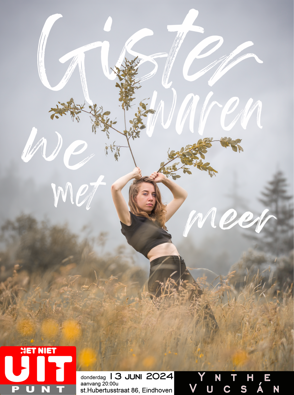 In ‘Gister waren we met meer’ gaat Ynthe de confrontatie aan met de onvermijdelijkheid van eindigheid. Aan de hand van eerlijke anekdotes, absurde sketches en een vleugje muziek poogt ze vorm te geven aan haar roerige verhouding tot de man met de zeis. Omdat ze nou eenmaal geen antilope is.