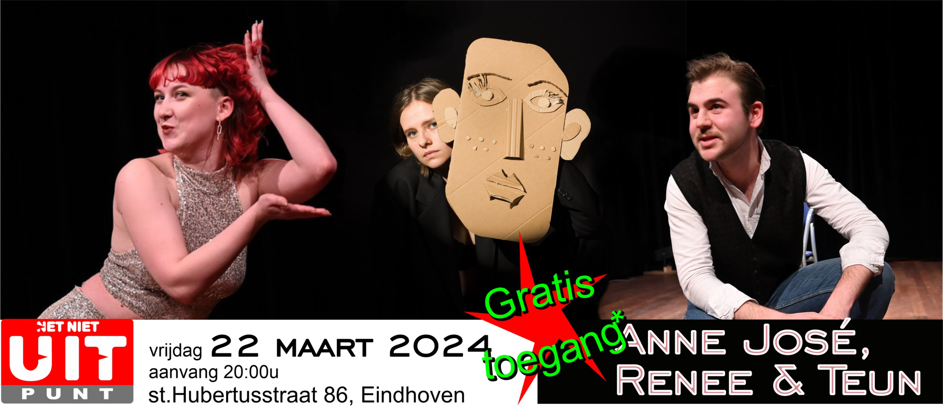 Anne-José Krooneman is een excentrieke maker die zich bezig houdt met haar plek in deze wereld, maar het liefst creëert ze haar eigen plek waar ze helemaal schaamteloos zichzelf mag zijn. Of het nou dans, conference, zang of fysiek spel is, overal neemt ze haar publiek ongegeneerd in mee.